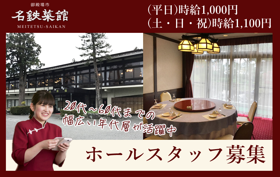 中国料理 名鉄菜館 ホールスタッフ・調理補助・商品パック詰め募集中!